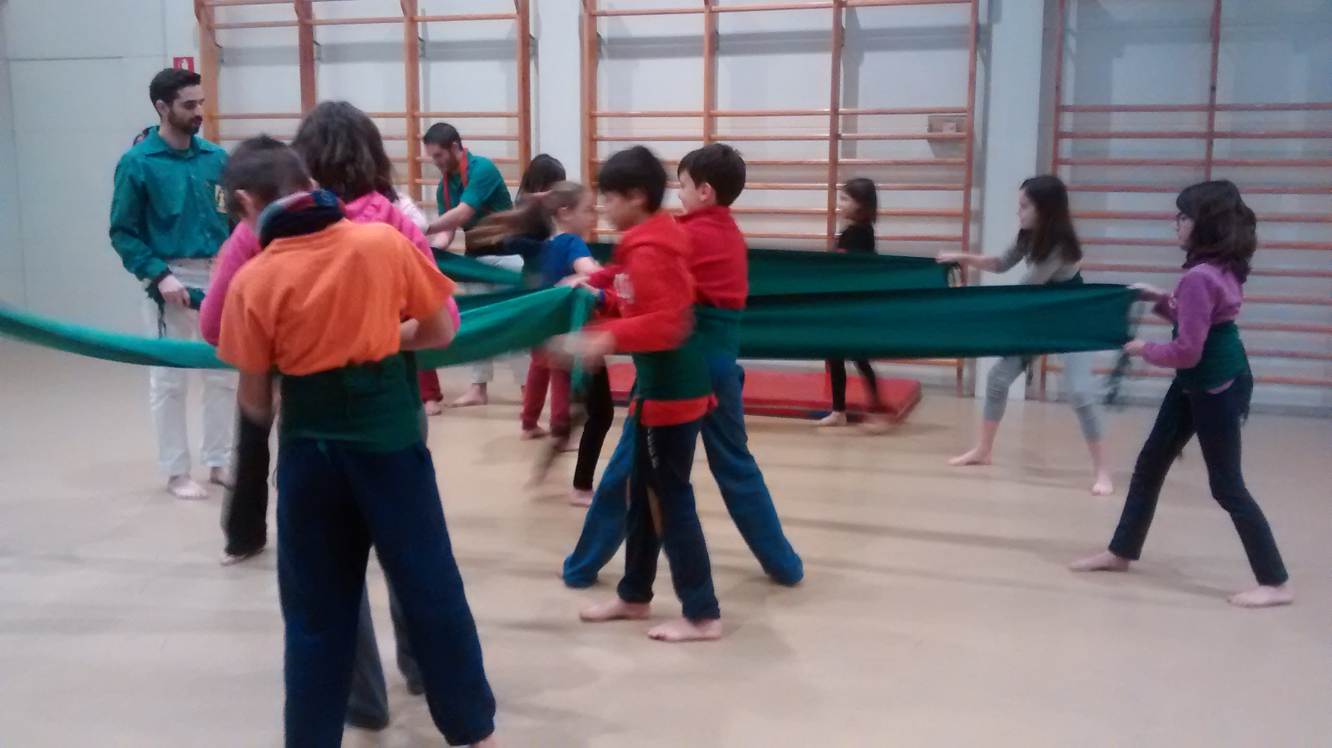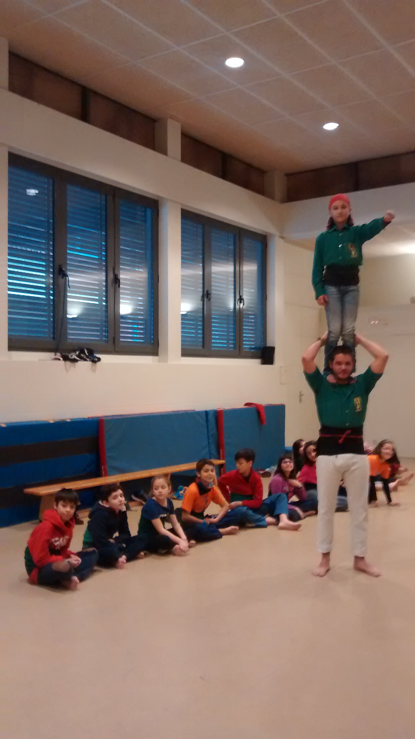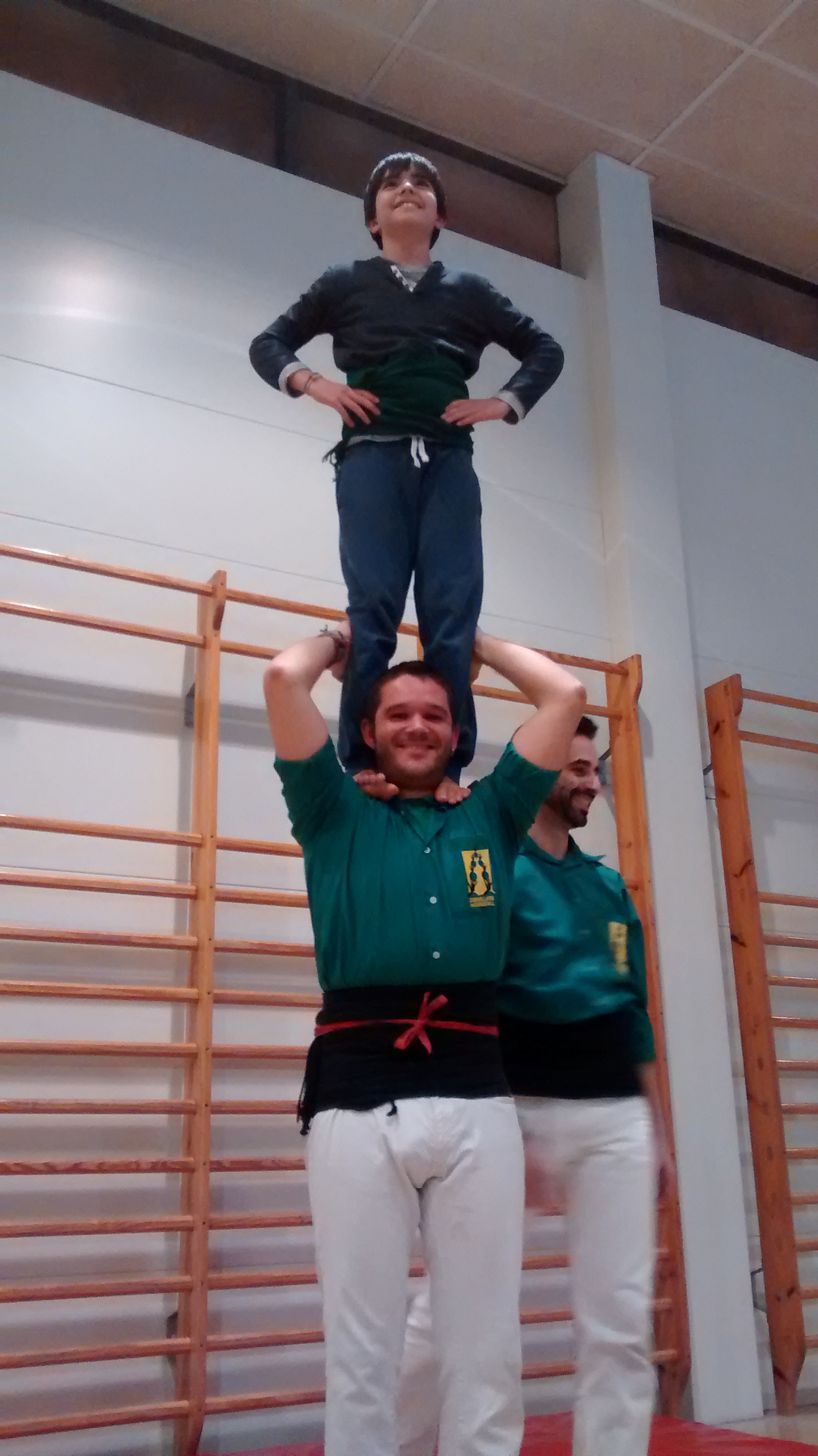 Després vam anar al gimnàs i ens vam separar en dos grups. Un grup es va enfaixar i va pujar a sobre un dels castellers. L’altre, va aprendre vàries maneres d’agafar-se segons els diferents tipus de castells. Després vam canviar perquè tothom ho pogués provar tot.