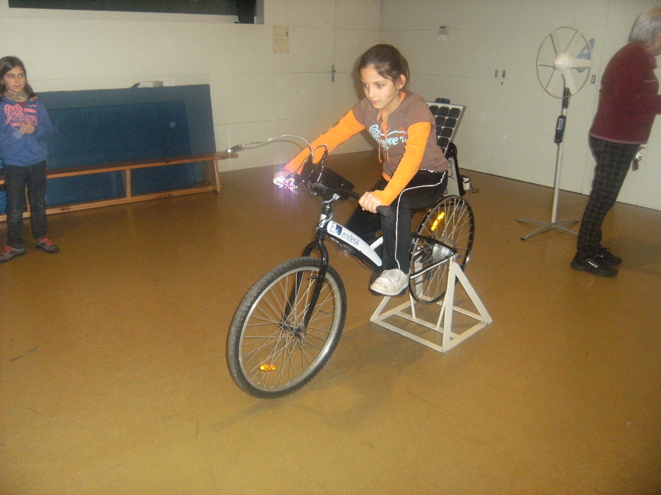 El noi va portar diferents aparells elèctrics que no estaven connectats a la corrent i que havíem de fer funcionar amb fonts d’energia renovables:
