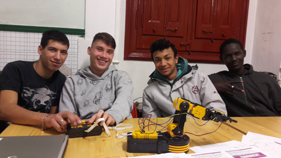 Es tracta d’un braç robòtic amb cinc motors elèctrics que fa tota mena de moviments, controlat per una consola de comandaments. Jordi, Jonathan, Manuel, Boubou han fet una bona feina seguint les instruccions de muntatge i connectant el sistema elèctric que el fa moure. Enhorabona a tots! Ha estat una bona experiència per ells i han après un munt de coses sobre la robòtica i el acoblament de peces per construir una màquina. Ara continuarem treballant el tema de la robòtica amb kits LEGO Wedo 2.0.
