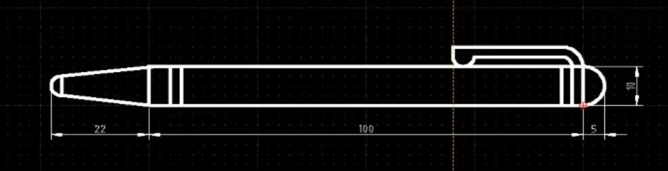 Primer realitzarem el disseny en LibreCad del següent bolígraf:
