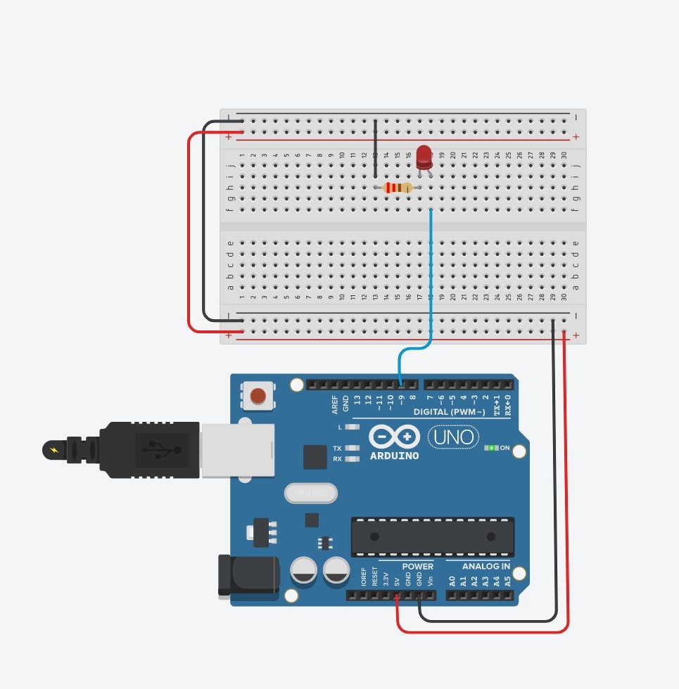 - Encendrem un led connectat la sortida 9 digital de la nostra placa d’arduino