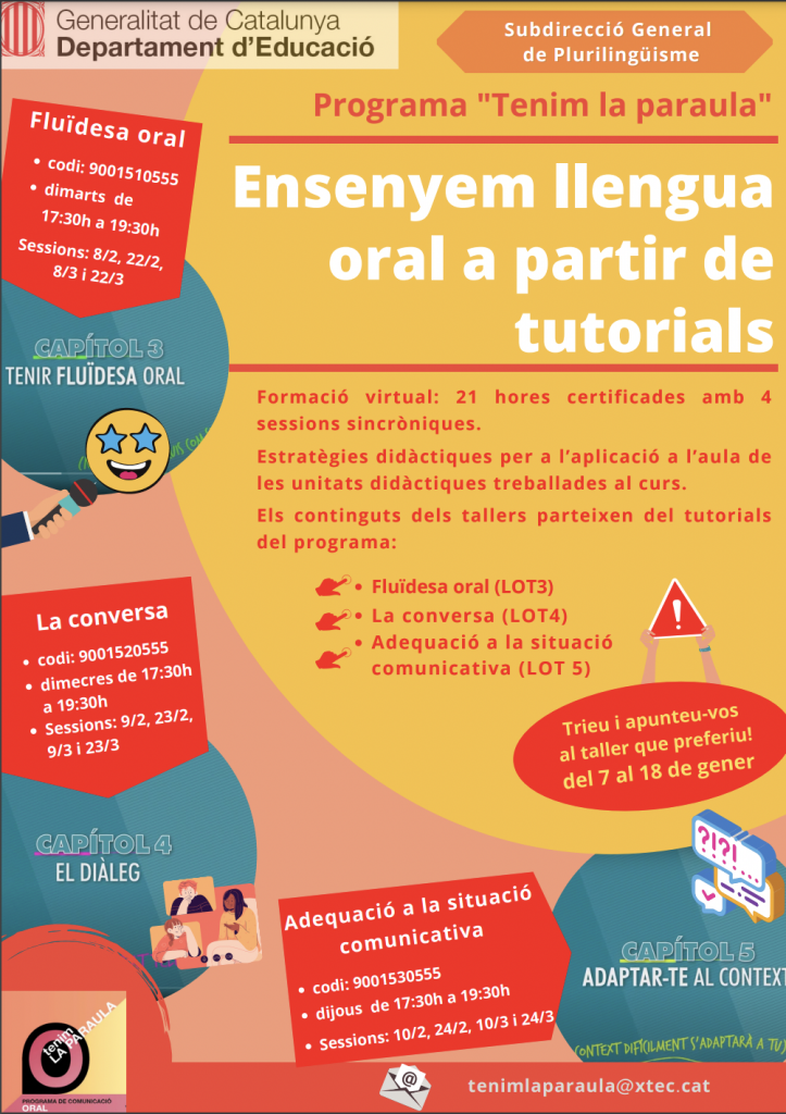 En aquesta sessió aprofundirem en l’anàlisi dels eixos de comunicació oral en el centre i us facilitarem noves eines i dinàmiques per poder transferir als vostres centres.