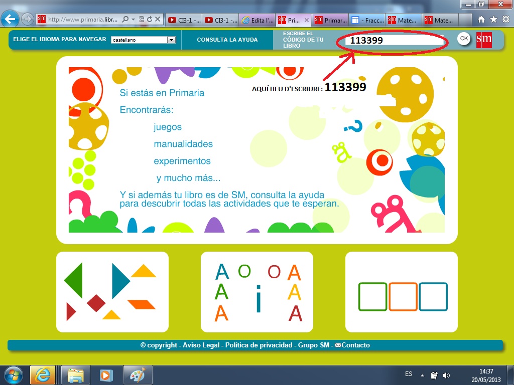 Si us fixeu en la imatge, el cercle vermell és on heu de posar el nombre i us ensenya com fer-ho! Per cert, si poseu el número 113366 Us envia als recursos de Medi Natural!