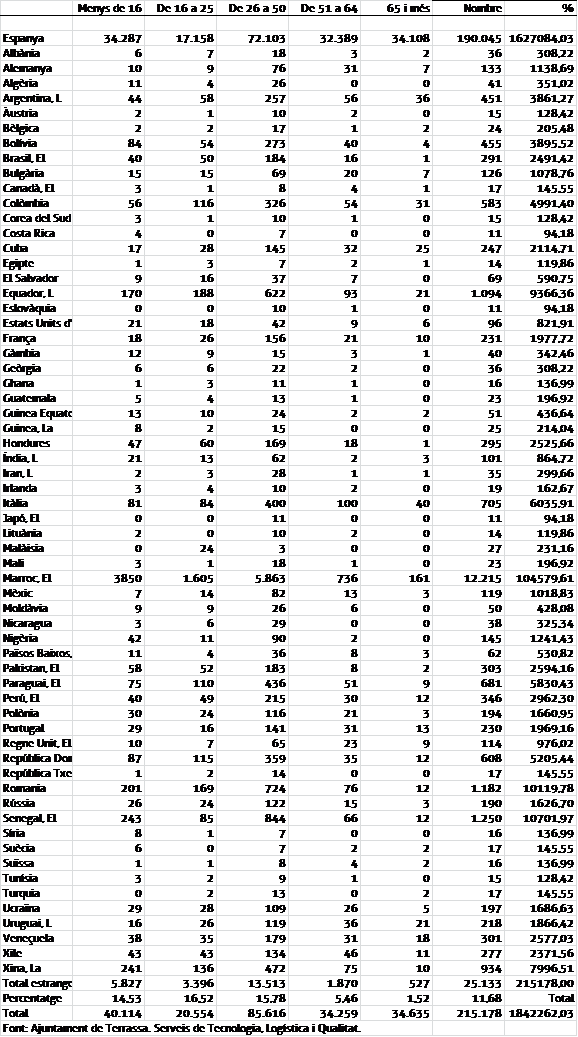– Quants estrangers viuen a Terrassa i quin percentatge representen?