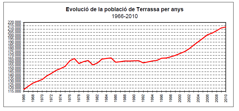 Evolució de la població de a Terrassa 1966-2010 Font: Anuari 2010