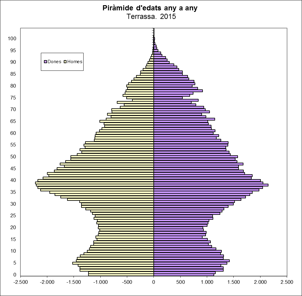 – Quina és la franja d’edat en que hi ha més habitants a Terrassa?