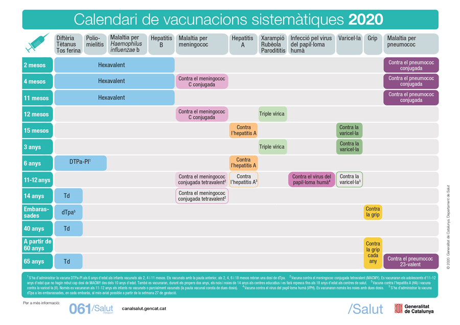 Heus aquí el calendari de les vacunes sistemàtiques: