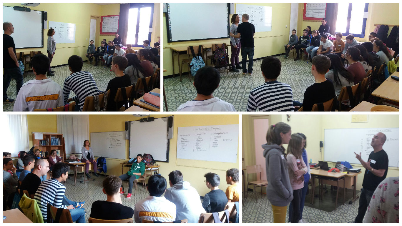 Aquest dimecres 26 d’octubre ens van venir a fer una xerrada sobre l’assetjament escolar. En Marc i la Marina ens van fer una introducció sobre els problemes del bulling i més tard vam poder posar-nos en el lloc de la persona assetjada gràcies a un monòleg interpretat per en Marc. Va ser una activitat molt dinàmica ja que vam participar en tot moment, fins i tot al final vam escollir a una persona perquè parlés com si estigués en el lloc de l’assetjador/a.