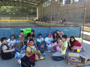 Pilota presonera, basket, alimentació,hoquei,escacs,hanbol,ultimate. Després vam fer una parada per esmorzar. Posteriorment vam fer pitxi,malabars i aerobic.Quan vam acabar vam ballar totes les escoles la cançó del mundial.