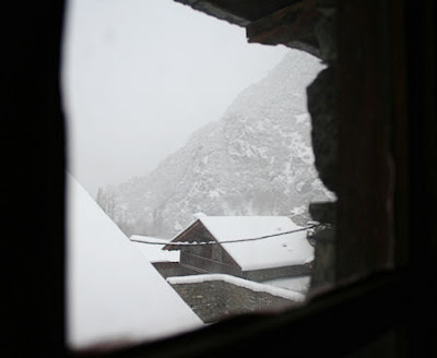 A Berrós diuen que no neva gairebé mai… ui, sí, quan al temps diuen a 100 metres potser aquí neva que estem a 1090 metres. Doncs l’excepció l’hem trobada aquest cap de setmana, aquí us deixo una foto que he fet a quarts de nou, aquest matí, des d’una finestra de la casa.