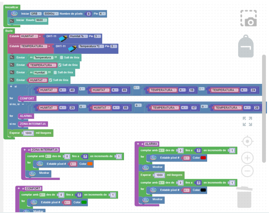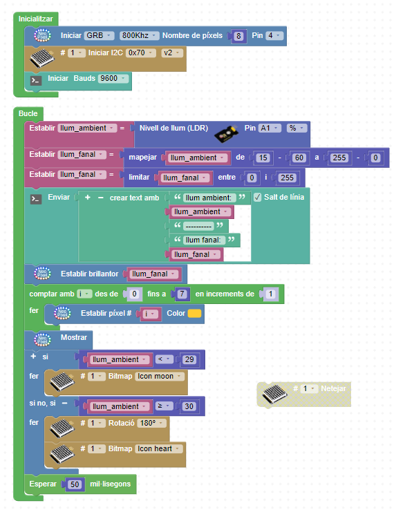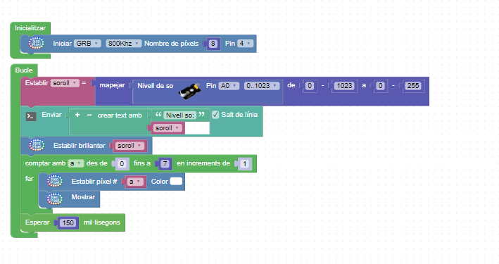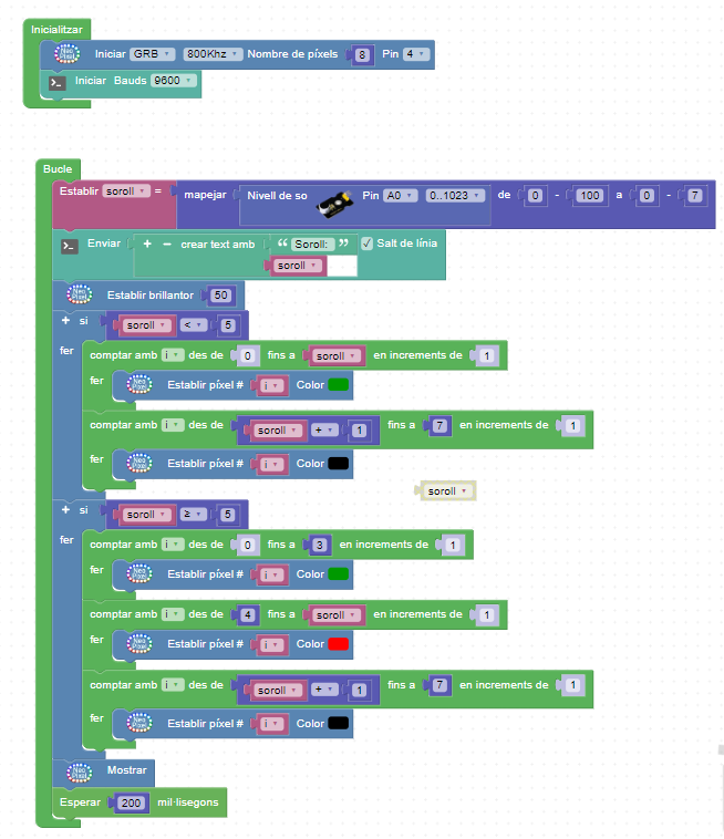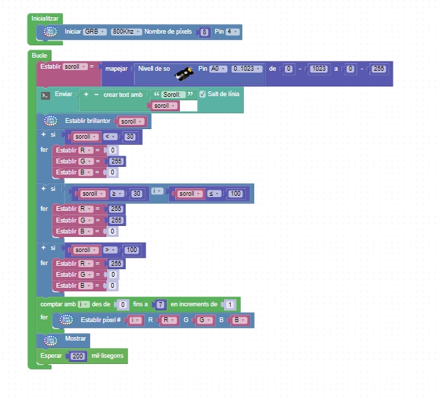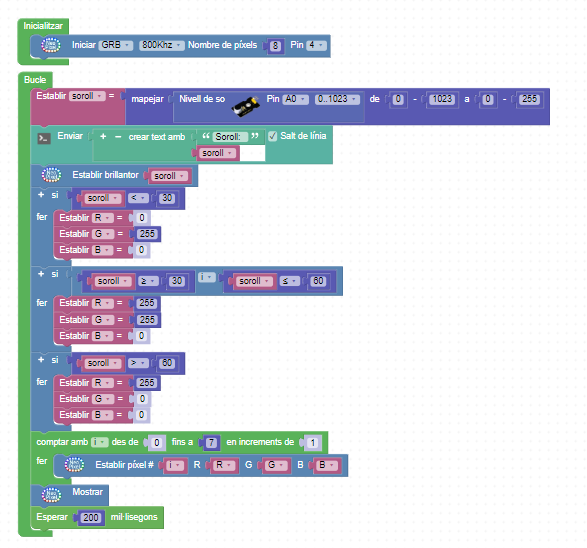Seguim amb un segon programa de nom “Semàfor de soroll intensitat dels leds 2”