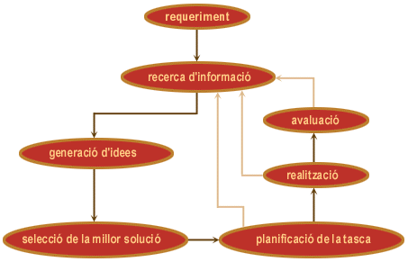 El procés tecnològic és un mètode de treball sistemàtic que facilita la realització de projectes. Consta d’un seguit d’etapes de treball o fases que cal aplicar en l’ordre que indica el diagrama. Les línies grogues indiquen que, de vegades, cal una cerca d’informació per a solucionar problemes que apareixen durant l’aplicació del procés