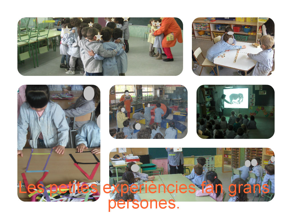 Cada grup-classe ha anat passat per totes les aules d’infantil i ha realitzat l’activitat proposada en cada una d’olles. En una de les classes de P-3 es feien figures geomètriques i en l’altre , aprofitant que hi ha pissarra digital em vist un power point d’il·lusions òptiques. En una classe de P-4 hem jugat al joc dels paquets i en l’altre hem contat els elements d’una imatge en molt poc temps. I per últim en les classes de P-5 hem jugat al domino i hem fet grans construccions.