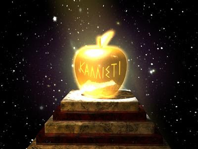 Fa referencia a la poma daurada, que la Deessa Eris va deixar a les noces Tetis i Peleu. Aquest fet va produir la disputa entre les tres Deesses Hera, Atena, Afrodita. Aquesta disputa és la que acabarà desencadenant la Guerra de Troia. Això significa que un assumpte sense importància pot acabar portant cap a una gran disputa.