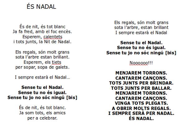 És Nadal [Sense tu] Publicat el 14 de novembre de 2014 per jcanet6 4 http://blocs.xtec.cat/tromrumba/files/2014/11/És-nadal-sense-tu.mp3 És Nadal [BASE INSTRUMENTAL] http://blocs.xtec.cat/tromrumba/files/2014/11/Sense-tu-És-Nadal-Instrumental.mp3