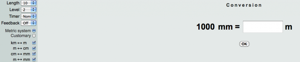 Aquí podeu practicar per convertir longituds a altres unitats de longitud. No us oblideu de seleccionar les caselles de l’esquerra.