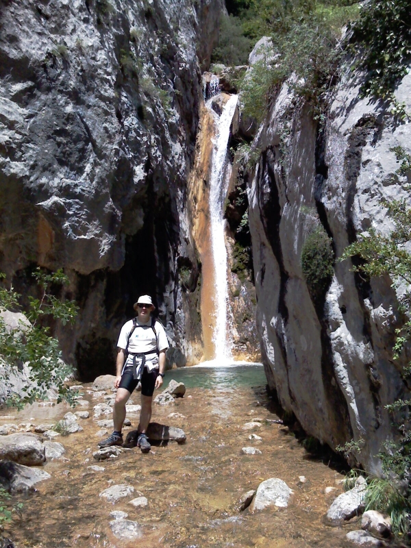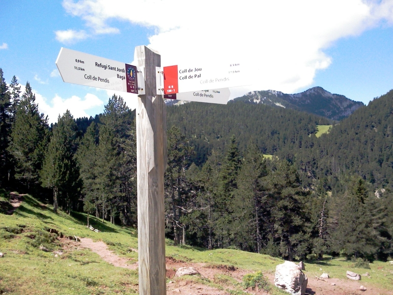 El dilluns també es va llevar gris, però de seguida es va aclarir i va lluir un bon sol. Així que vam anar cap a Bagà i d’allà cap al veïnat de l’Hostalet, on vam deixar el cotxe. D’aquí surt el PR-C 125, que és el que volíem seguir. El vam agafar primer en direcció al cap de la Boga i el cap de la Boixassa. Una pujada molt ombrívola per un bosc molt espès i humit, que recordava una selva. Al coll de Galligans deixem el PR que ens baixaria fins al refugi Sant Jordi i anem a buscar la carena i el GR 150. Un cop hi arribem, el seguim en direcció est fins al coll Pendís, des d’on baixem, ara sí, al refugi Sant Jordi, que trobem en obres. En aquest punt reprenem el PR que baixa en direcció als Empedrats. Abans d’arribar-hi, ens creuem amb un caminant que fa ruta en solitari. Ets en Jordi? Ell es gira i ens mira amb posat sorprès intentant reconèixer-nos. Som l’Albert i la Irene. Ara ja hi ha caigut! És un altre blocaire al qual vam conèixer en una “trovada” entre esquiaires a la Vall d’Aran organitzada per internet. Els nostres blocs estan entrellaçats. Jordi, ens ha fet molta gràcia trobar-te! Quina casualitat! Esperem que vagis tenir una bona ruta! Bé, tornant a la nostra ruta, els Empedrats són una successió de gorgs i cascades que conviden a un bany. La força de l’aigua és imponent i el soroll que fa ens acompanya fins al final del trajecte. Tram molt distret i sorprenent!