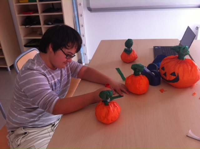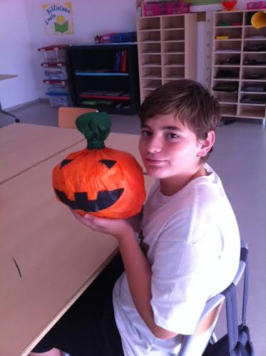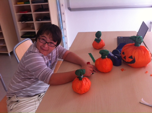 Activitat de HALLOWEEN 11 de novembre de 2014Generalenriquevega A la nostra USEE hem celebrat la festa de HALLOWEEN. Hem fet un taller a la classe d’anglès: un “Jack-o-Lantern” amb papers de diari! RESULTAT FINAL!Us agraden?