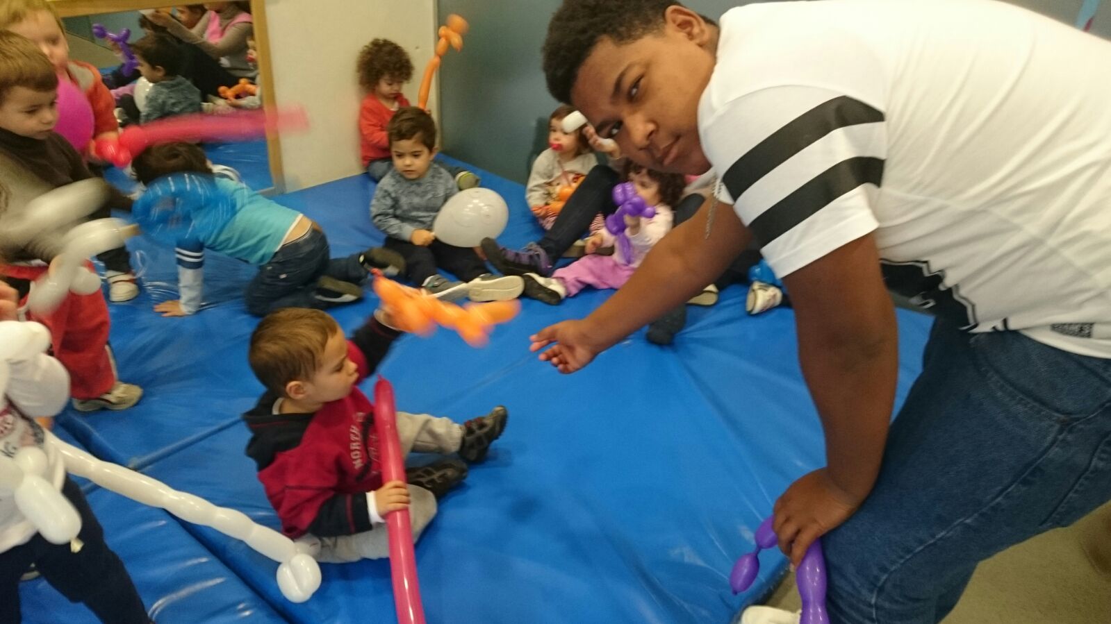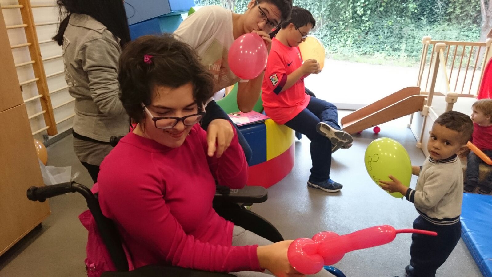 Cada nen va tenir un globus com a regal i van estar molt atents a les nostres cançons i balls.