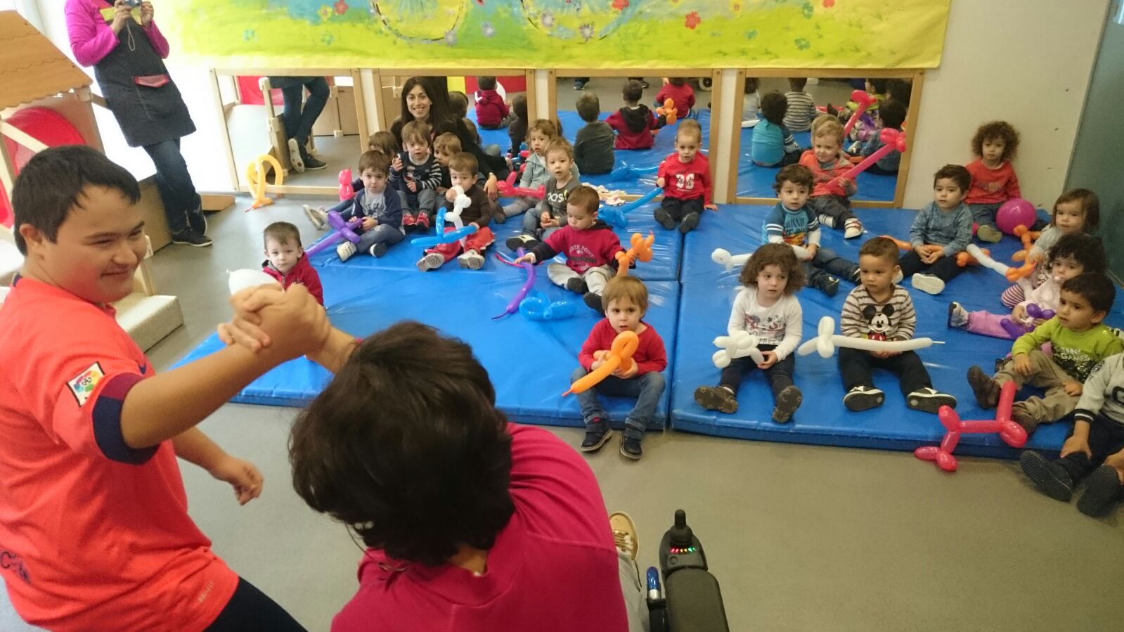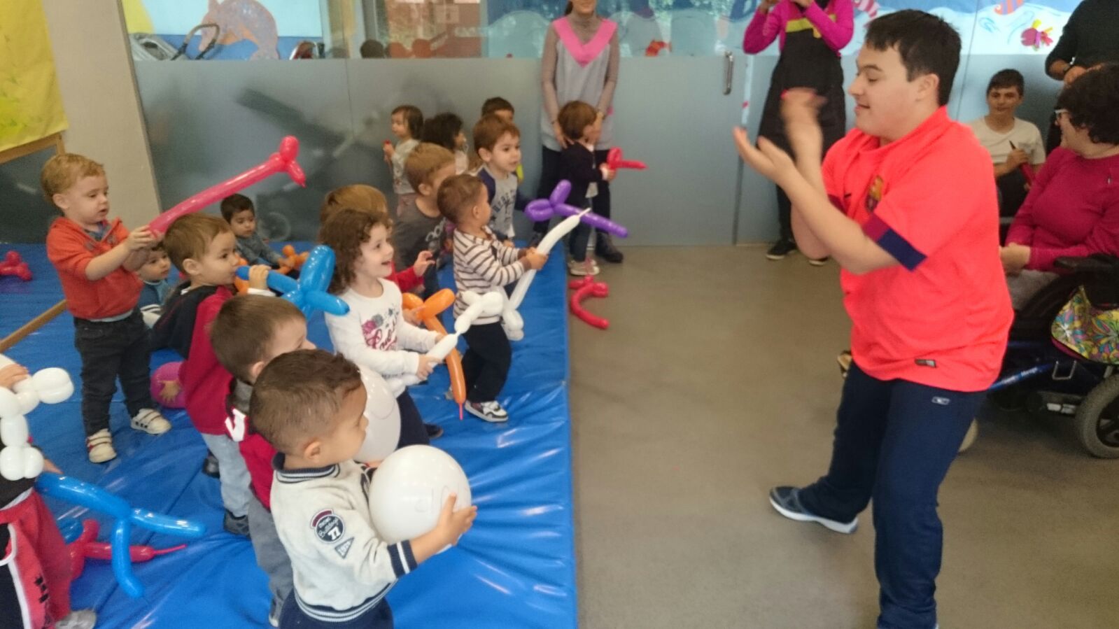 El divendres dia 11 de desembre vam anar a la llar d’infants La Balena Blava a fer unes activitats per als nens petits. Vam fer globoflexia, nadales i cançons, balls i papiroflexia.