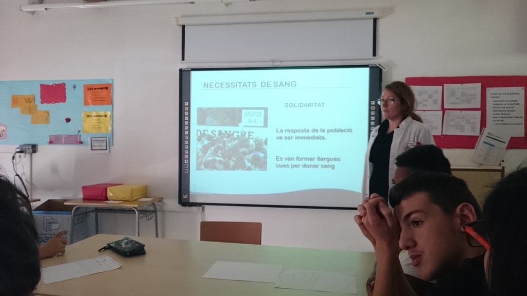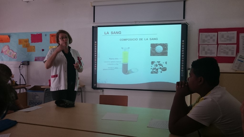 La mare de la Inessa, en la seva visita a la  nostra classe,  ens va ensenyar moltes  coses de la seva professió. Ens va explicar de què treballa  i  com funcionen els centres de donació de sang.  Ens va portar un power-point amb molta  informació sobre plaquetes, transfusions, sistema circulatori, unitats ambulants, etc.