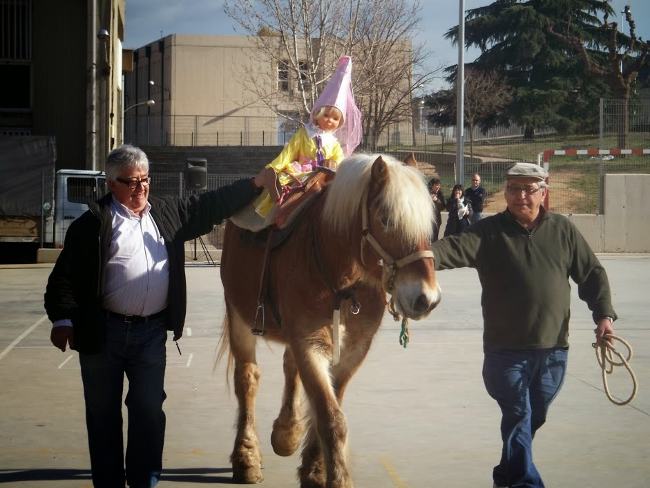Doncs va arribar en cavall. Un cavall super enorme, però alhora molt simpàtic. L’acompanyaven els seus cuidadors i….