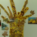 L’arbre està fet amb fulles de diferents colors (grocs, taronges, vermells…), mides, textures,…