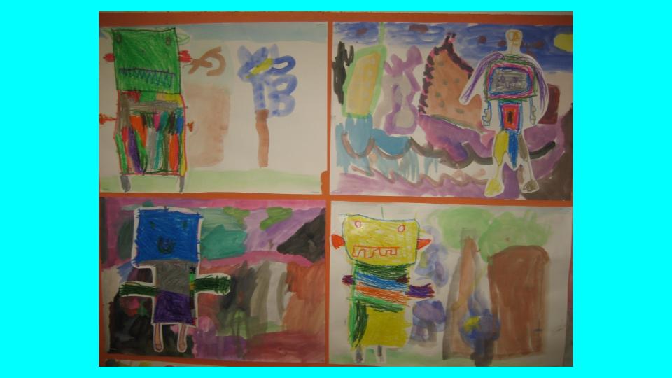 Es proposa als alumnes, que estan molt engrescats, que pensin com dibuixaran l’hàbitat del seu robot. Els explica que en aquesta sessió, només hauran de pintar amb aquarel·les el fons; que no han de dibuixar cap robot perquè el faran un altre dia. Es deixa un temps prudencial per a pensar i tot seguit, es convida als alumnes a què expliquin on viurà el seu robot. Tots els alumnes van explicant on viurà el seu robot: a la selva, a la ciutat, a New York, en el bosc, a la sabana (el curs passat vàrem ser la classe dels lleons)…