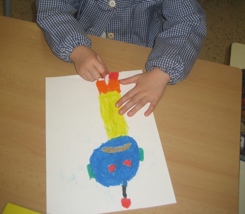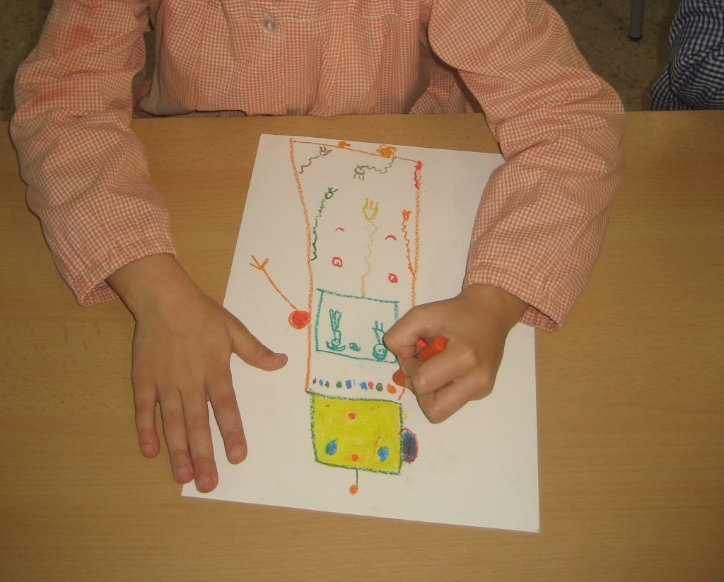 Un cop visualitzades les imatges de diferents robots, la mestra demanarà als infants que pensin com volen que sigui el seu robot i quina forma ha de tenir; també de quin colors serà.