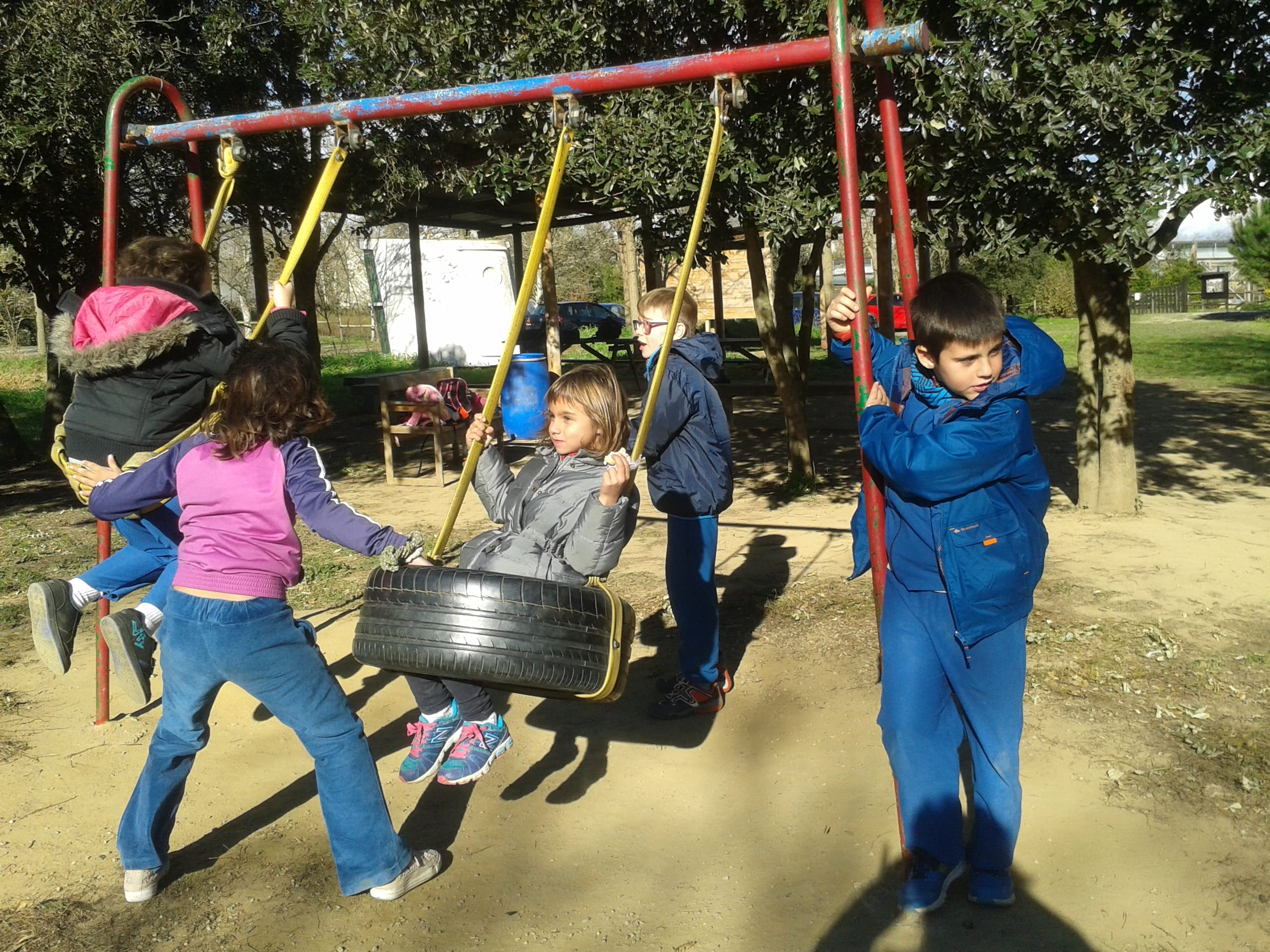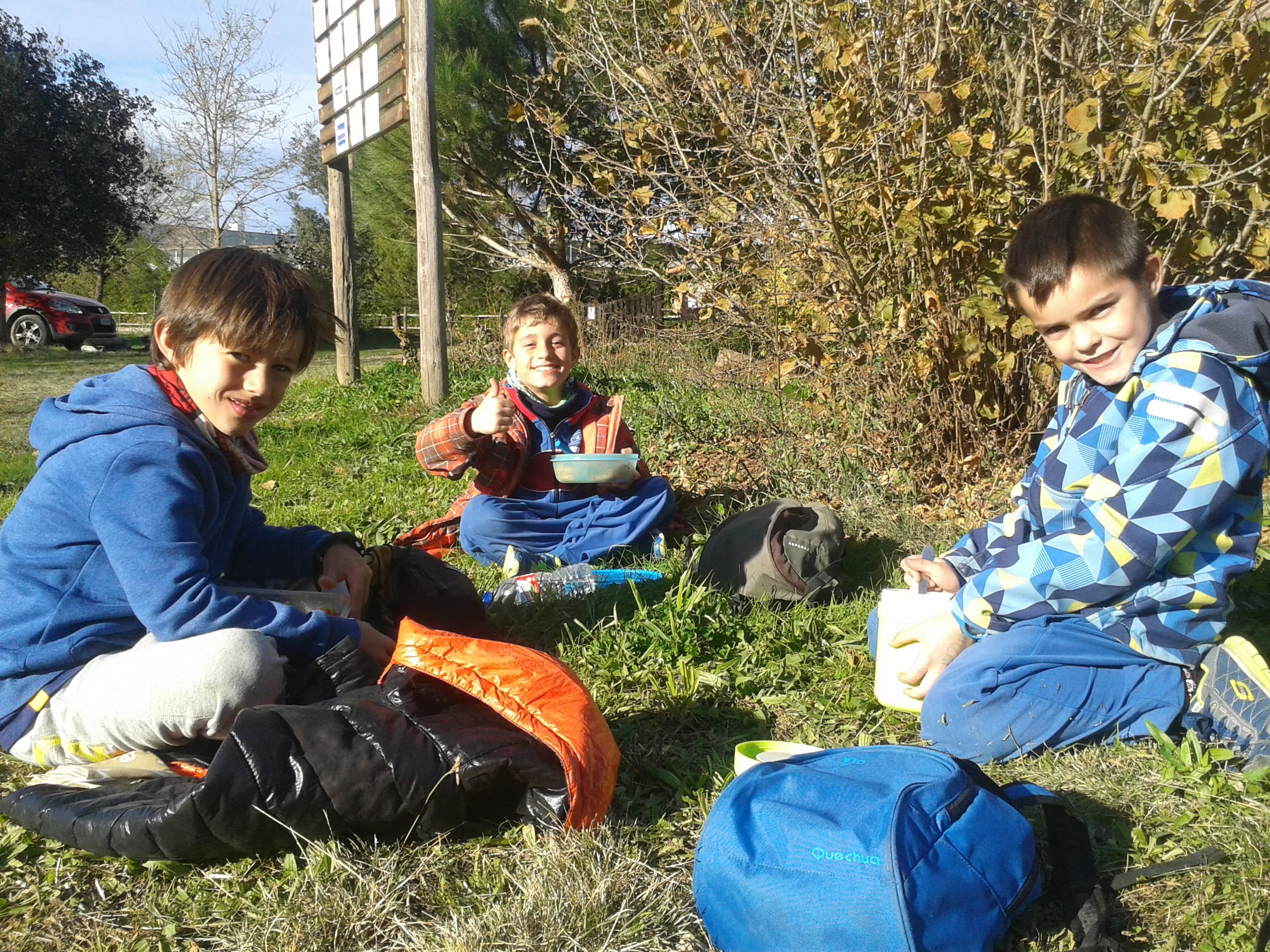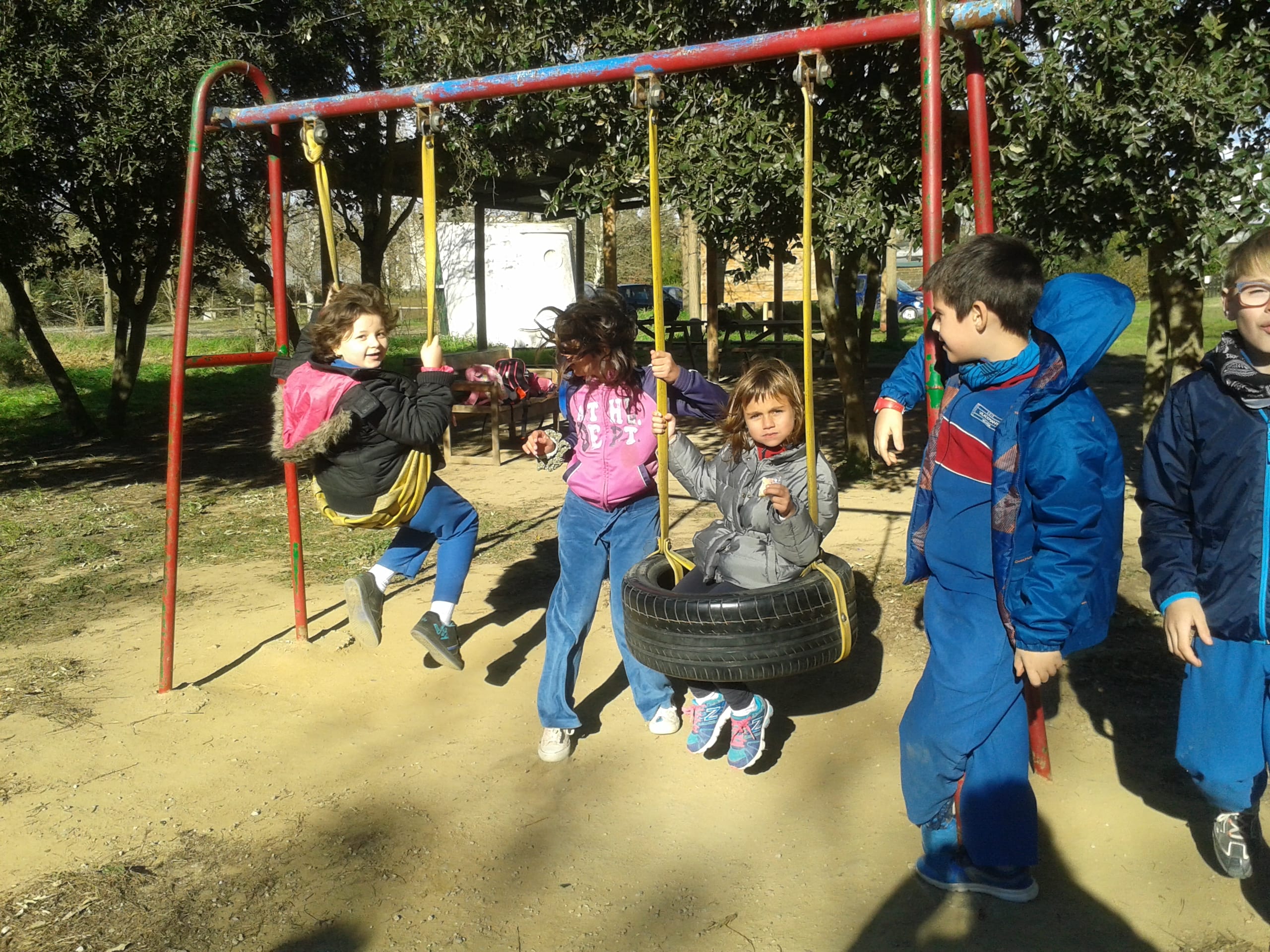 A la tarda, abans de menjar les castanyes que van torrar els pares d’en Ramiro i en Pablo, vam veure les danses i cançons que havien preparat tots els nens i nenes de l’escola.