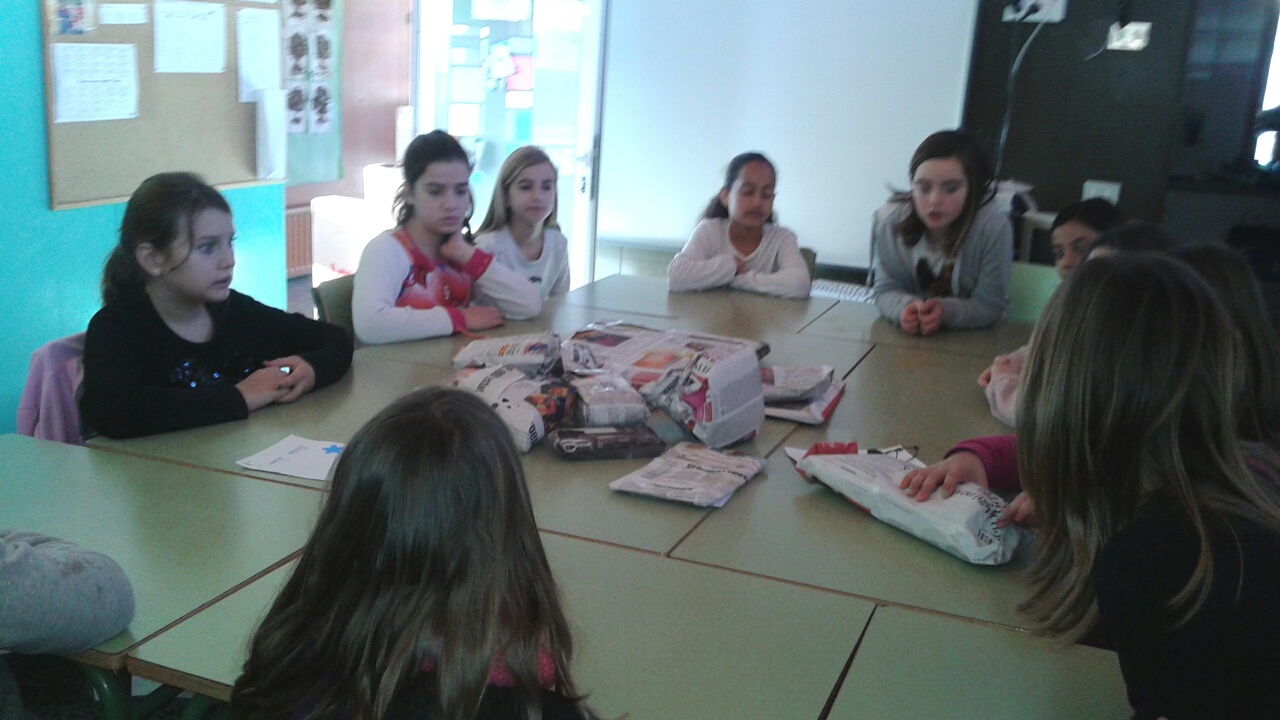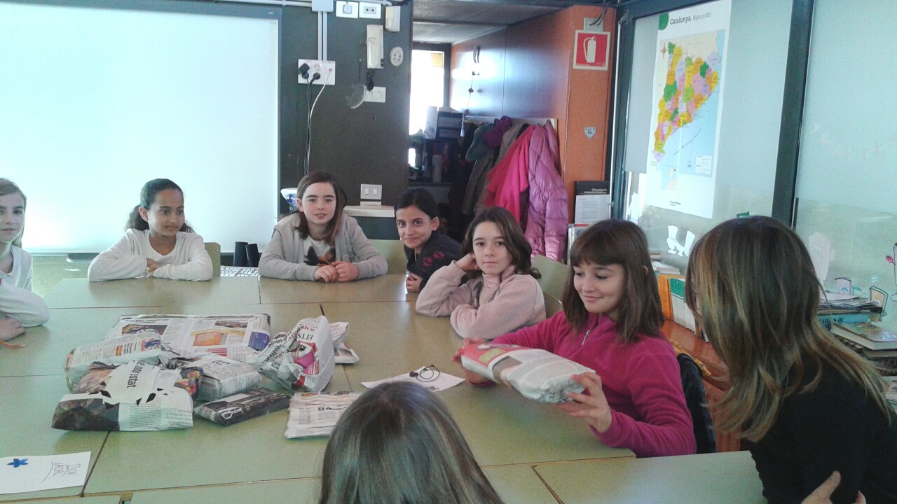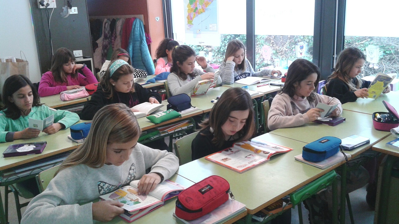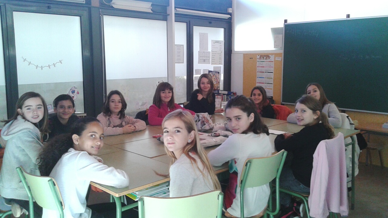 Les alumnes de 5è fent treball cooperatiu. S’han dedicat a buscar informació sobre el poble per realitzar el treball.