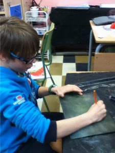 A la Setmana Cultural d’enguany, hem treballat el pintor català Modest Cuixart. Hem mirat uns quants quadres d’ell i hem vist que la seva pintura és abstracte.