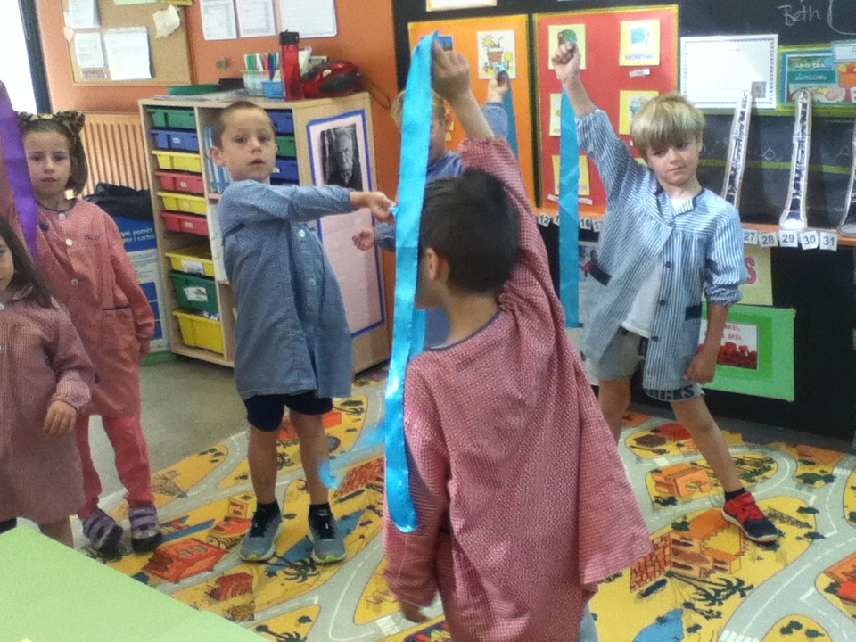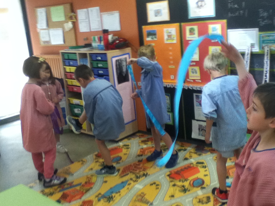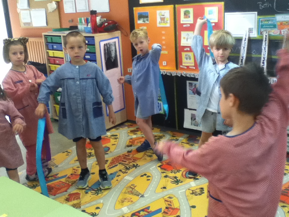Avui a la classe de música amb els de P5, hem treballat el moviment corporal amb les cintes de colors… primer hem buscat diferents moviments que podem fer amb les cintes i després hem una activitat a partir d’una audició.