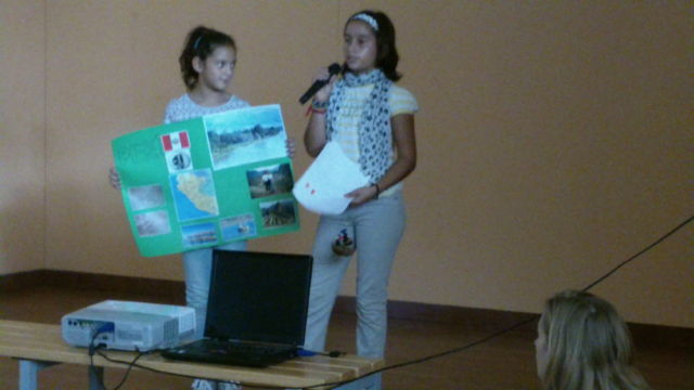 10/10/2012 Ariadna Ros. Ens ha presentat un espai del Perú perquè, fa temps, els seus pares hi van fer un viatge. Ha presentat dades del país i explicat algunes curiositats, a partir d’un mural que ha elaborat en cartolina, amb fotos de la seva propietat i còpies de mapes.