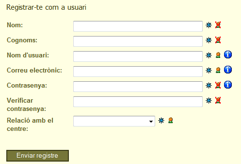 L’accés a la part privada requereix demanar l’alta d’usuari/ària mitjançant un petit formulari al qual s’accedeix a través de l’enllaç registrar-se aquí, situat a la part superior de la pàgina d’inici.