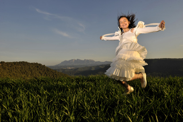 - Els nens són els meus fills saltant en un prat de roselles a la primavera (que evidentment he retallat i sobreposat). Els ulls també són del meu fill, captats amb la càmera per fer aquesta proposta.