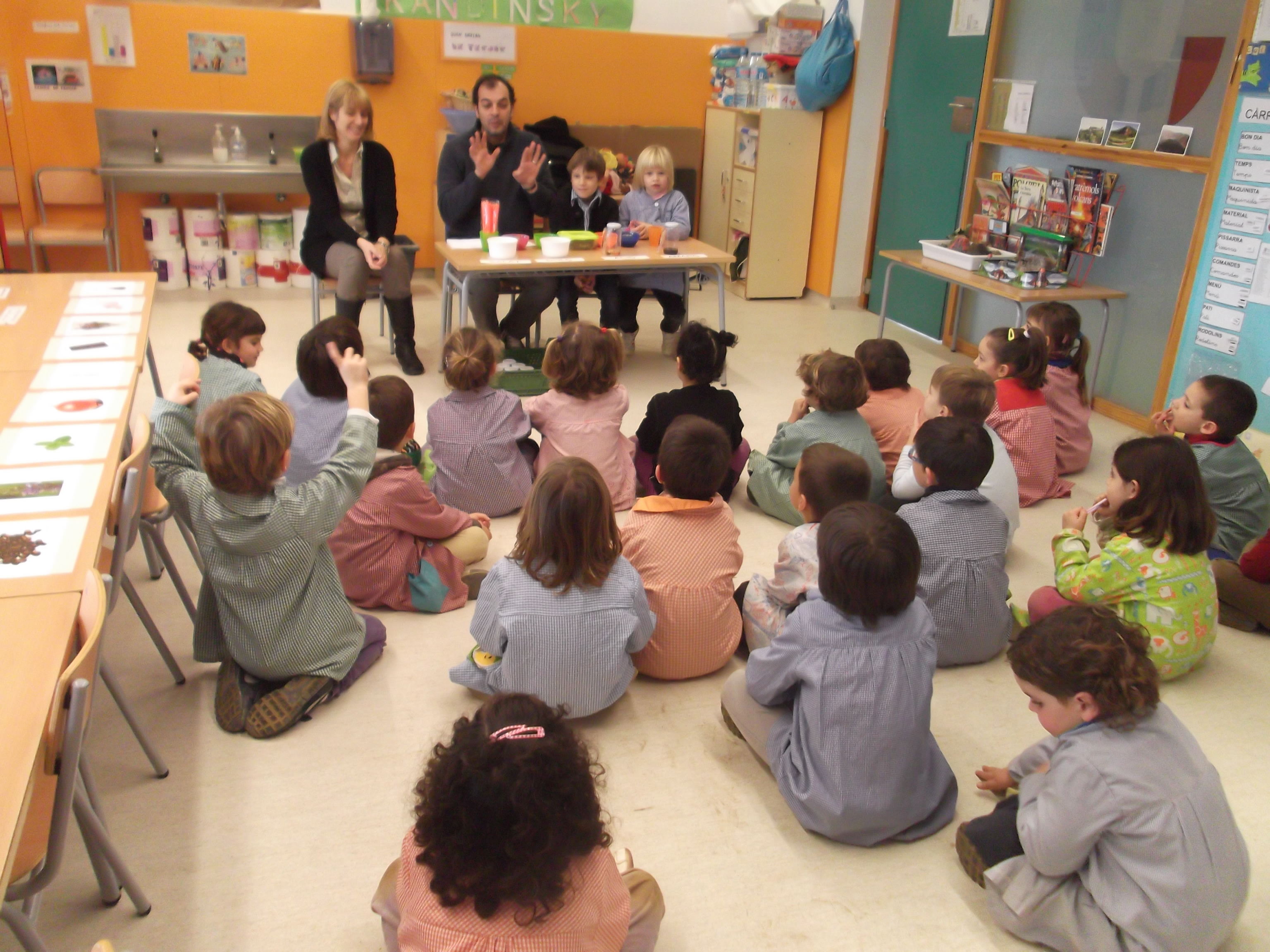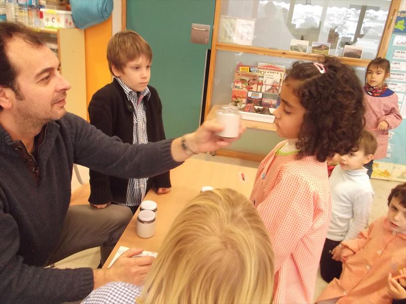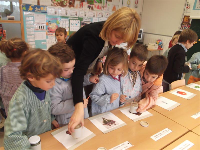 Bona nit. Ja fa molts dies la família de la Caterina, van venir a l’escola i  vam fer una activitat molt engrescadora  i divertida. Es tractava d’olorar certs objectes i encertar la imatge segons el flaire que desprenia. Us asseguro que el Jean Pierre, l’Anna, l’Eugeni i la Caterina es van involucrar molt i junts vam passat una estona molt dolça. Us poso algunes fotos per fer dentetes, no cal dir que esteu convidats a venir a l’escola i participar del què volgueu.