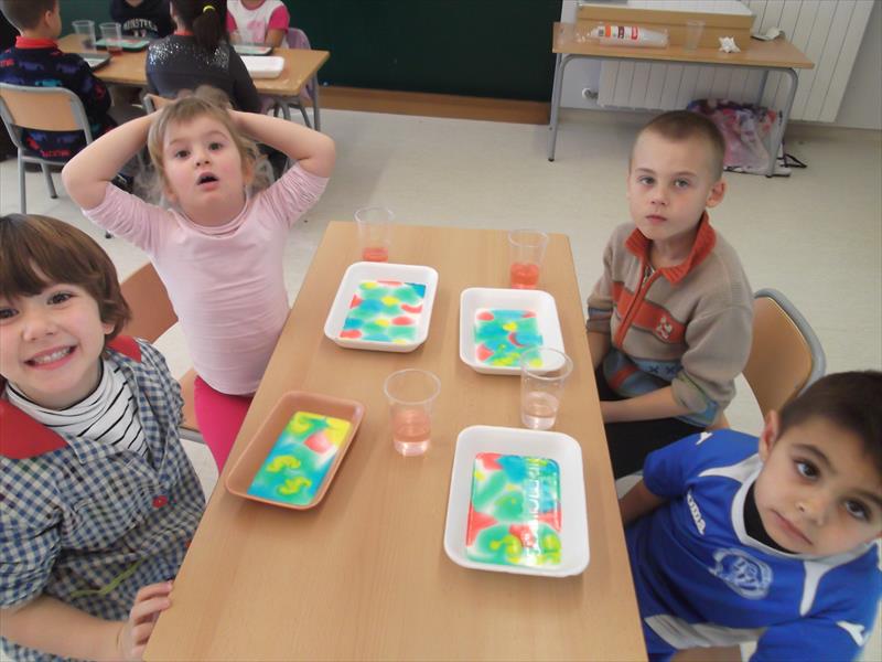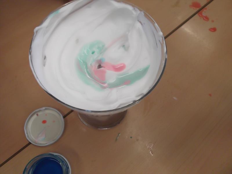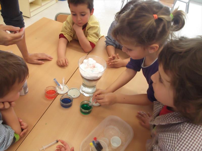 Un altre feineta era veure com baixava colorant alimentari  en un gerro d’aigua amb escuma d’afaitar. Mireu quines fotos.
