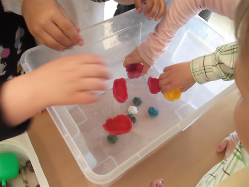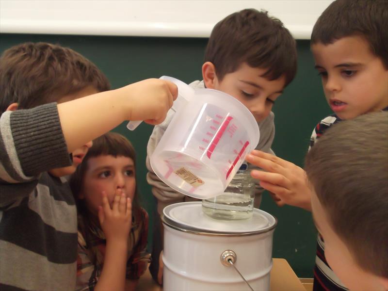 Un experiment de comprovar objectes que suren i altres que s’enfonsen, han vist com una bola de plastilina s’enfonsa i en canvi una barca feta també de plastilina surava.
