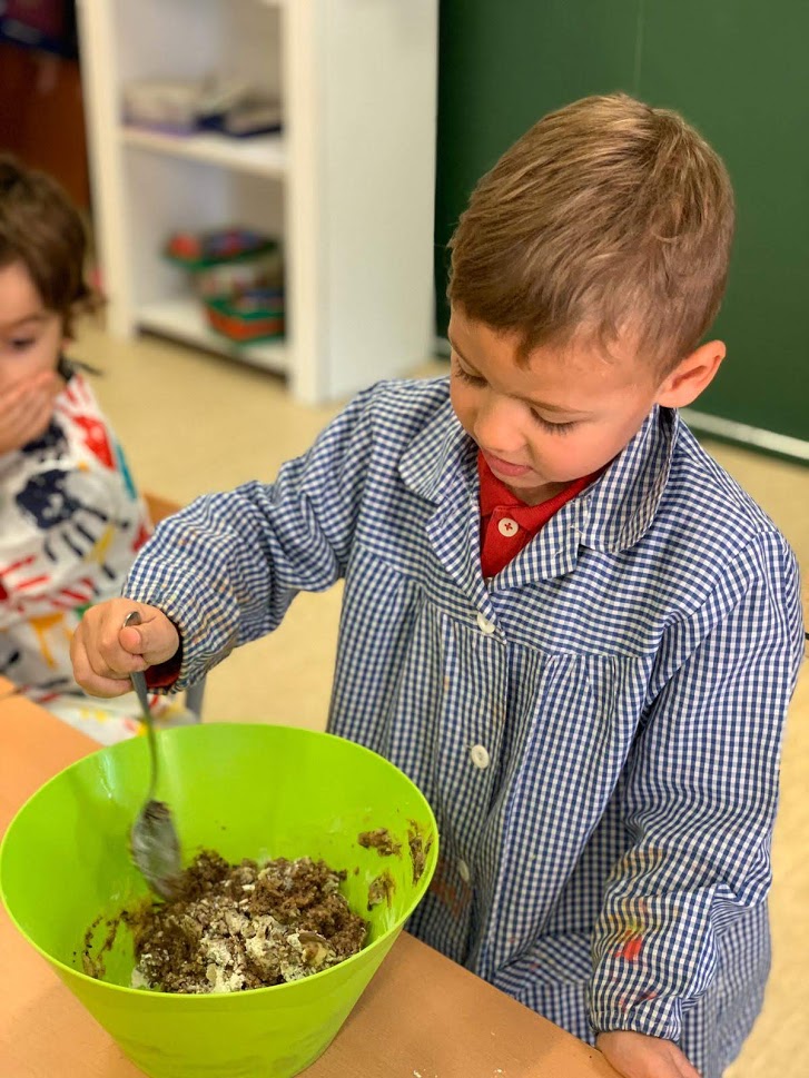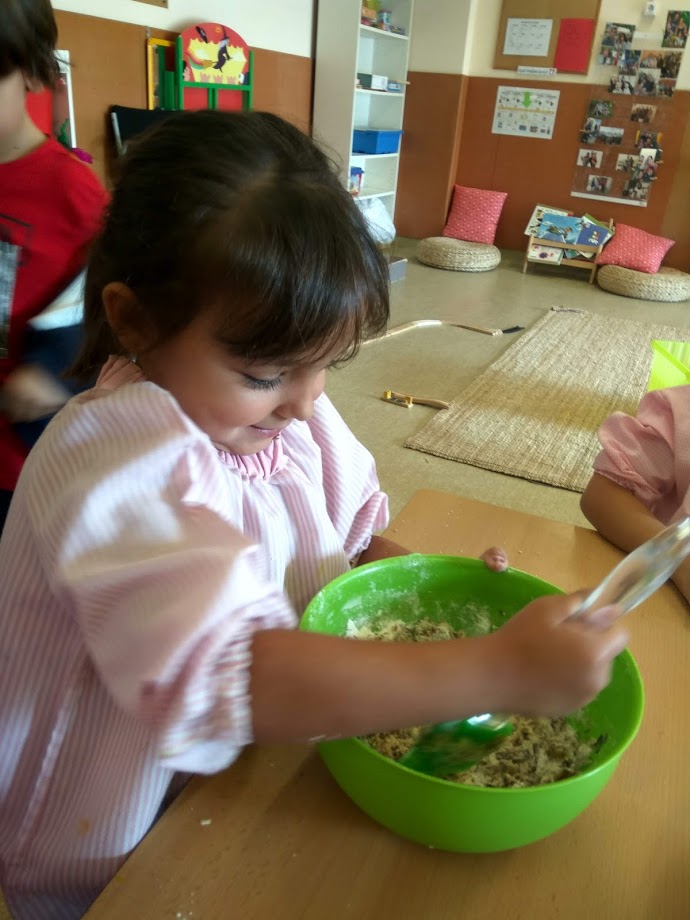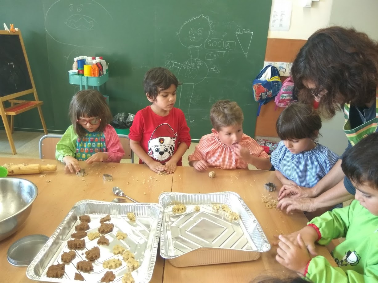 I per últim, la vam dur a terme! Vam pesar els ingredients, els vam barrejar tot fent la massa i vam poder fer les formes de les galetes. Quan ja tenim totes les galetes, les vam portar a la cuina de l’escola i ens les van fornejar. Vam quedar ben bones! Som uns bons cuiners i cuineres!
