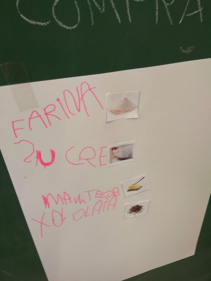 Primer de tot a l’aula vam parlar dels ingredients que necessitavem i vam el·laborar la llista de la compra per a poder anar al mercat municipal a comprar-ho.