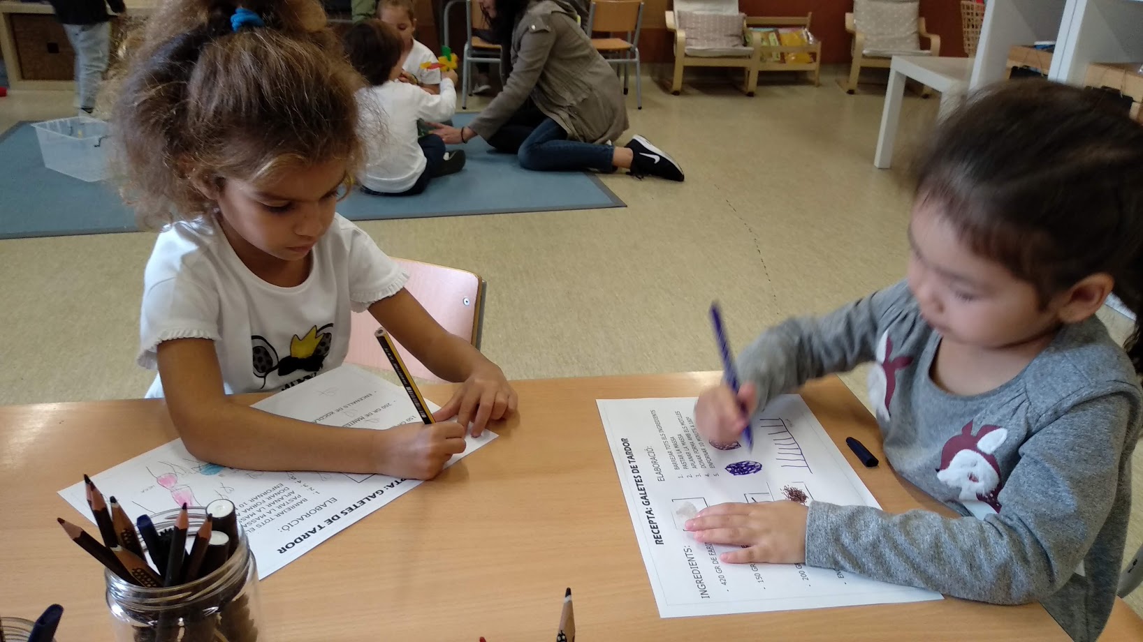 Una vegada ja sabiem tots els ingredients necessaris, vam parlar dels passos a seguir per a poder fer-les! Vam treballar així la recepta, coneixent la seva elaboració, la quantitat dels ingredients que necessitavem…
