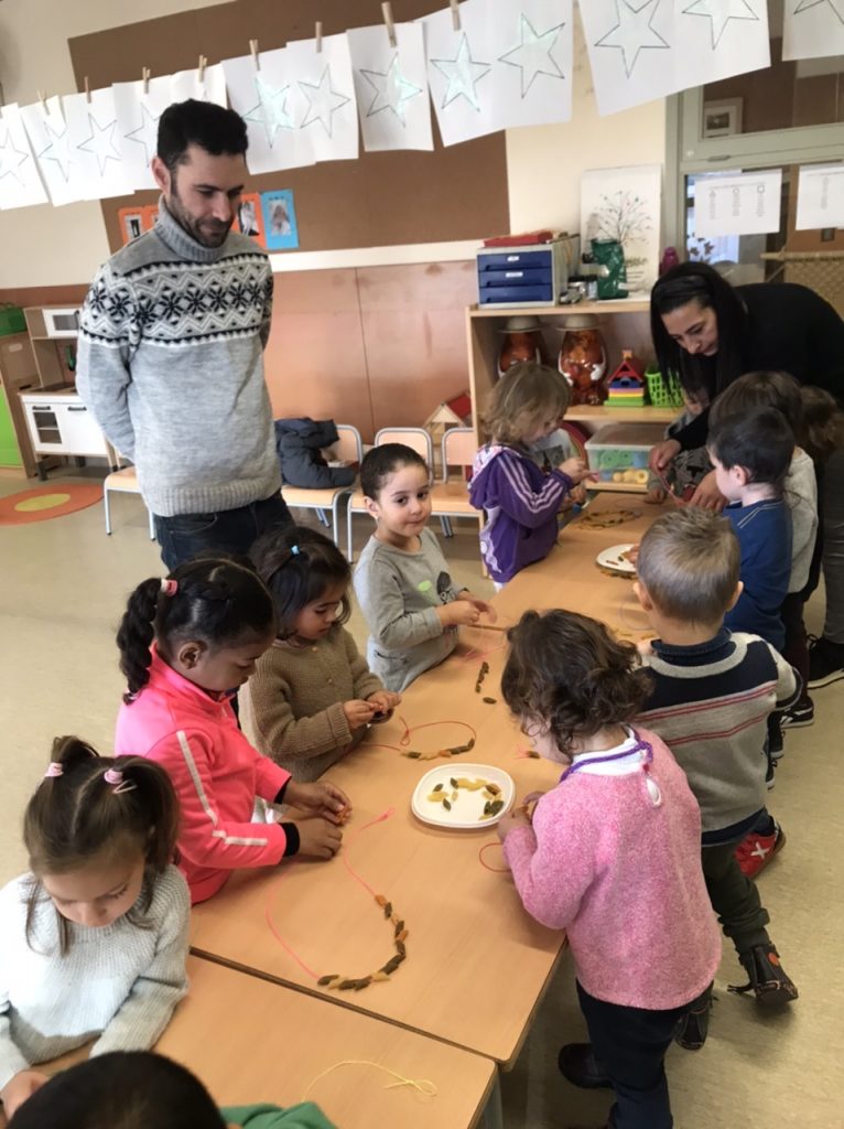Aquesta setmana la Claudia ha estat la protagonista de la classe de les Mulasses. Ens ha anat ensenyant algunes joguines i les fotos de quan era petita, d’alguns familiars i del que més li agrada que és anar amb la seva bicicleta. El dijous passat van venir els seus pares i ens van ajudar a fer uns collarets de macarrons que ens van quedar molt bé! Moltes gràcies!!