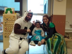 La 3a protagonista de la classe dels diables ha estat la Leyre. Ha compartit amb nosaltres les seves fotos, joguines i llibres preferits. Fins i tot, ens ha portat una foto del seu amic apadrinat que viu molt lluny de Vilanova. També ens esperava una sorpresa, la Leyre i els seus pares van venir a la classe disfressats! L’Elsa (la Leyre), L’Anna (la mare) i l’Olaf (el pare) van venir des d’Arendel fins a la nostra classe! Ens van explicar el conte de Frozen i van ballar les cançons de la peli. Els diables també ens vam animar a ballar i a fer-li una abraçada calentona a l’Olaf . Vam compartir moments congelats únics i molt especials!
