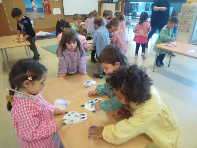 Una altra protagonista de la classe dels diables ha estat l’Arlet Nadales. L’Arlet ha volgut compartir amb les companyes i companys algunes de les joguines que més li agraden: el seu patinet, el seu gos/bolso, una llibreta que canvia de color si passes la mà per sobre, un bebé amb la roba feta per l’àvia de l’Arlet i una tablet de llum molt xula. També ens ha ensenyat les seves fotografies i hem conegut a l’Arlet de petita, a la seva família i el que més li agrada fer. A més, han vingut la seva mare i el seu germà a la nostra classe! Hem fet amb ells una careta d’un cavall (demà són els 3 tombs) i l’hem pintat amb els nostres propis dits! Per acabar hem escoltat la música de la festa dels tres tombs de Vilanova i hem fet nosaltres tres tombs a la classe amb la mama de l’Arlet al capdavant. Ha estat una tarda genial omplint boca per la festa del dia següent! Visca!