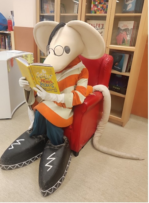 Dijous al matí, a la biblioteca de l’escola ens esperava, ella com sempre ben eixerida i contenta llegint un dels seus contes preferits! Estava tan concentrada amb el conte que llegia que no es va adonar que estàvem a la biblioteca! Fins que ens va olorar i…va ser moment en que ja ens va explicar moltes coses d’ella i de les dues biblioteques de Vilanova! Diu que aviat vindrà la seva amiga lluneta a portar-nos alguns contes per la biblioteca de l’escola! Es va posar molt contenta quan li vam regalar els nostres dibuixos…diu que se’ls posarà a la seva habitació! Quina il·lusió!