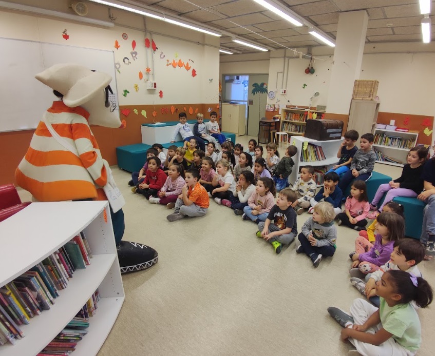 Dijous al matí, a la biblioteca de l’escola ens esperava, ella com sempre ben eixerida i contenta llegint un dels seus contes preferits! Estava tan concentrada amb el conte que llegia que no es va adonar que estàvem a la biblioteca! Fins que ens va olorar i…va ser moment en que ja ens va explicar moltes coses d’ella i de les dues biblioteques de Vilanova! Diu que aviat vindrà la seva amiga lluneta a portar-nos alguns contes per la biblioteca de l’escola! Es va posar molt contenta quan li vam regalar els nostres dibuixos…diu que se’ls posarà a la seva habitació! Quina il·lusió!