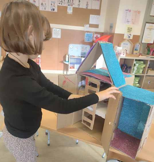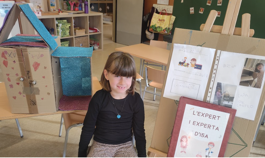 Ens ha portat una casa de cartró que ha fet a casa, decorada per fora i amb habitacions, escales i un llit gran dins.