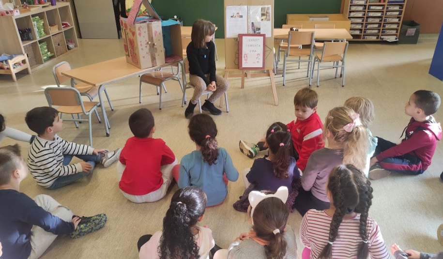 Ens ha explicat com l’ha fet, quins materials ha fet servir, com ha anat enganxant els trossos de cartró que feia servir… I també ens ha explicat com va fer fa unes setmanes una altra casa molt més gran que aquesta que ens ha portat a la classe!