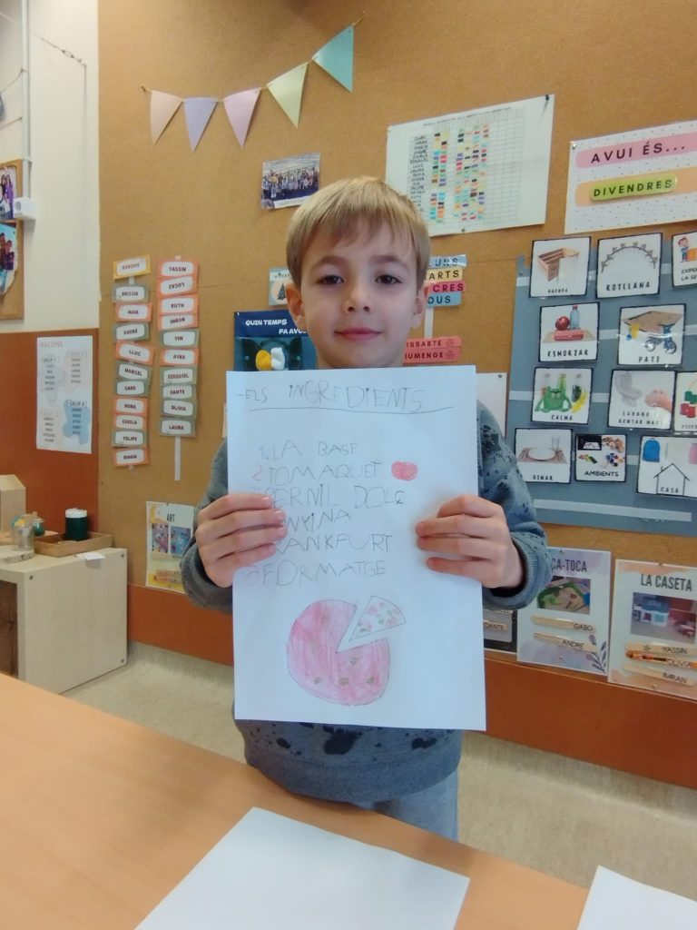 A la classe de la Lluna vam tenir un expert en fer pizzes. Ens va explicar que a Itàlia en mengen moltes i a ell li encanta preparar-les a casa. La seva especialitat és fer pizza de pernil dolç, tomàquet, tonyina, frankurt, olives i formatge, fins i tot a vegades hi posa pinya!